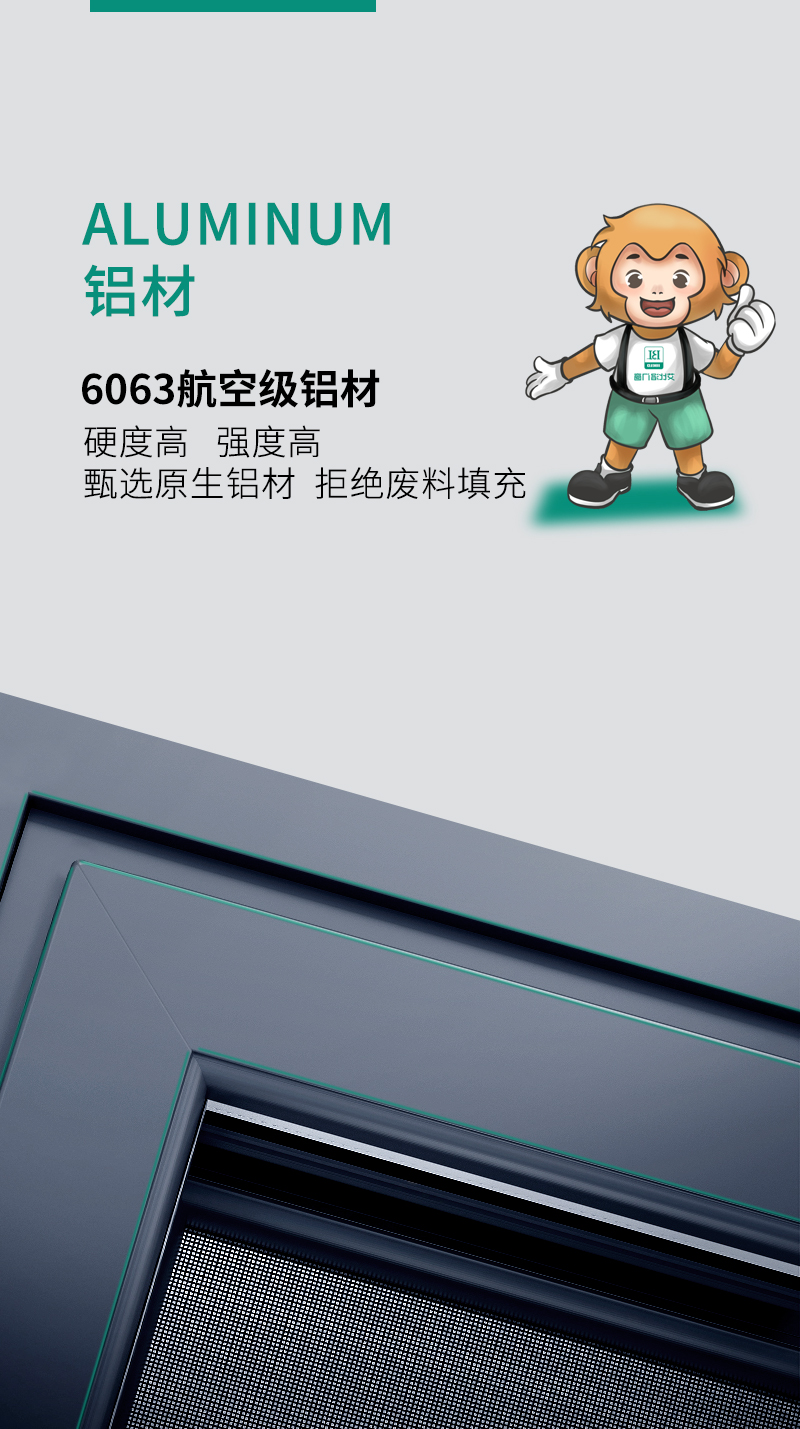 可选颜色(外色):灰色 咖啡色 白喷涂 绿色 香槟色 金橡木 金檀木 PU柚木 黄花梨 氟碳香槟金