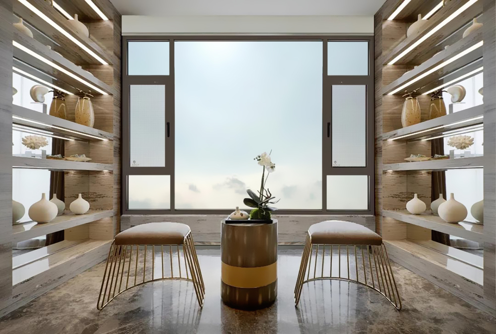 在窗型上,采用隐藏式窗框的结构,能巧妙地让窗扇“消失”,配合纤细的外框,大大减少了对阳光照射的限制,使室内空间更加明亮通透。